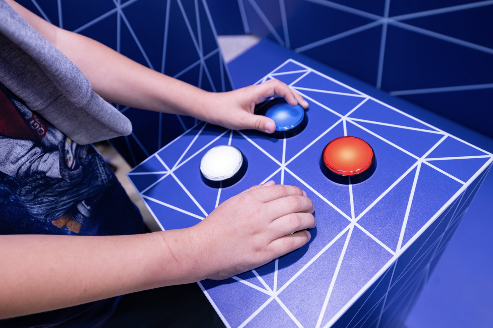 Запусти самый мощный компьютер современности. Макет квантового компьютера, который необходимо настроить. Посетители должны подобрать нужные разъемы для сверхпроводников и установить верную температуру, чтобы активировать процессор.